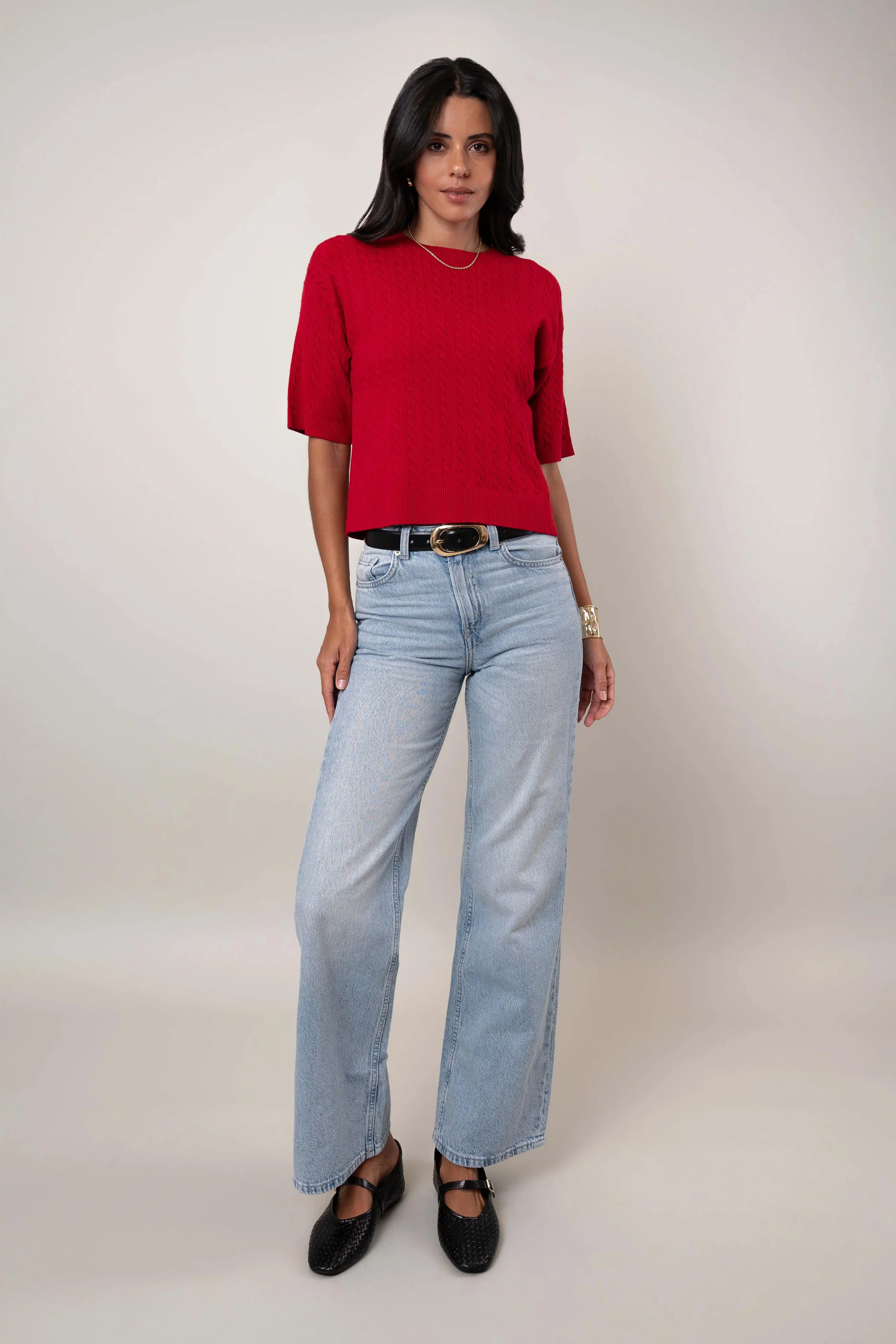 - Soft, mid-weight knit with classic cable detailing