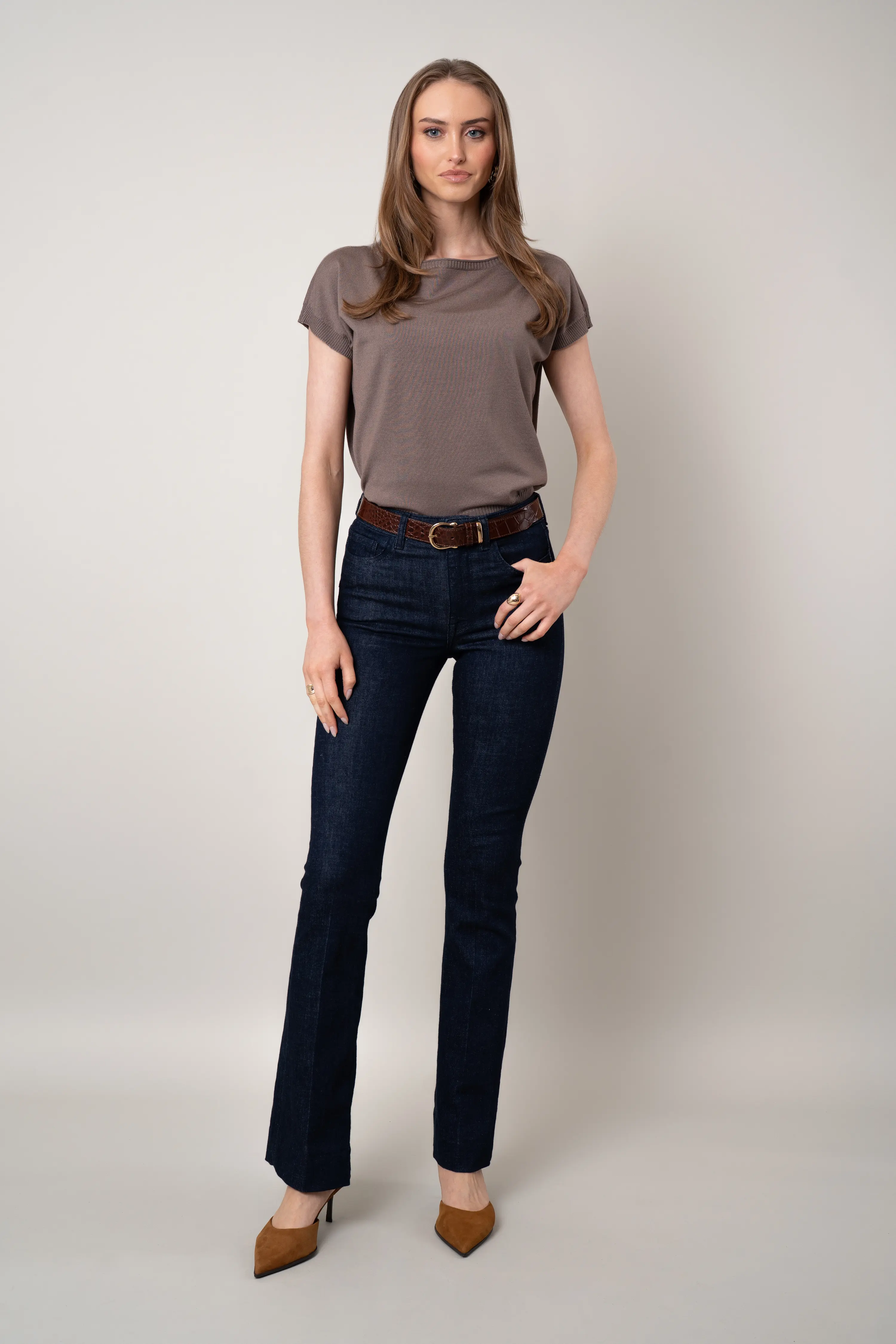 - Slightly tapered at the hip for clean styling